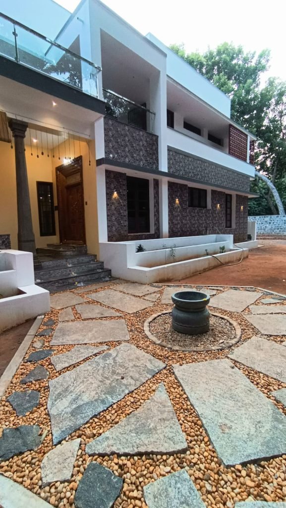 A luxurious escape blending modern design with traditional warmth. featuring spacious, high-ceilinged common areas, elegantly designed bedrooms with rich wood accents, and a stunning, uniquely landscaped exterior, this palace offers an exquisite and serene stay for a truly royal experience.